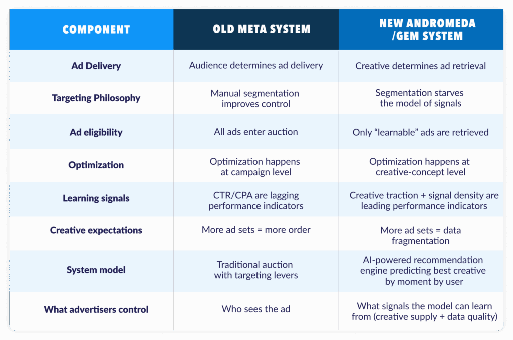 Campaigns broke after the July 2025 Andromeda update, leading to rising CPAs and dipping CTRs. The old strategy of manual segmentation is penalized because it starves the machine of necessary data. - 2. Meta is Now an AI Recommendation Engine