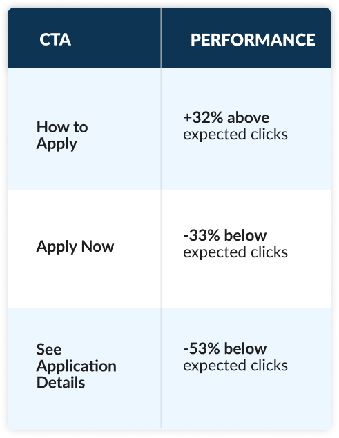 - When “How To Apply” replaced “Apply Now” in the final month, clicks immediately jumped +31%
